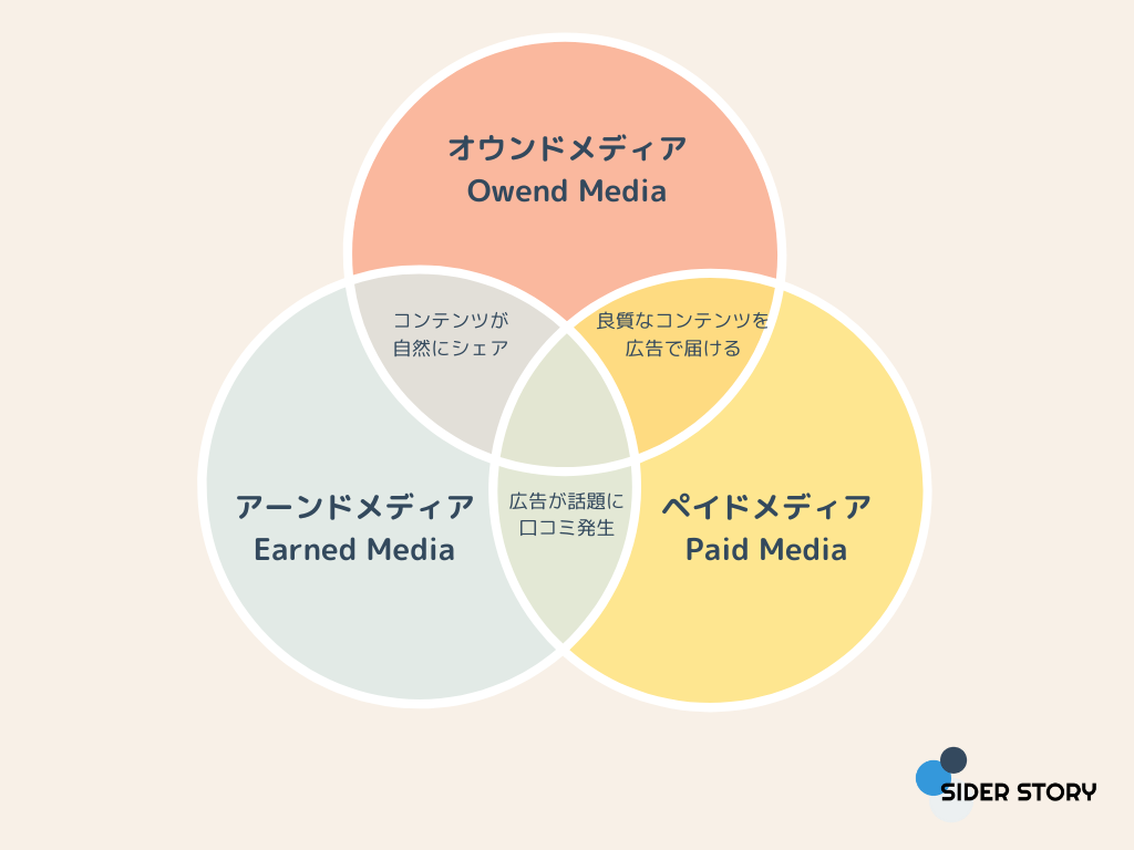 これら3つのメディアは独立しているのではなく、相互に連携させることでマーケティング効果を最大化できます。