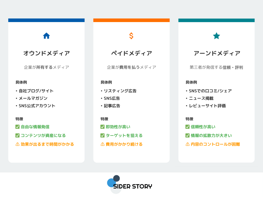 ペイドメディア、アーンドメディアとの違い(トリプルメディア)【図解で解説】